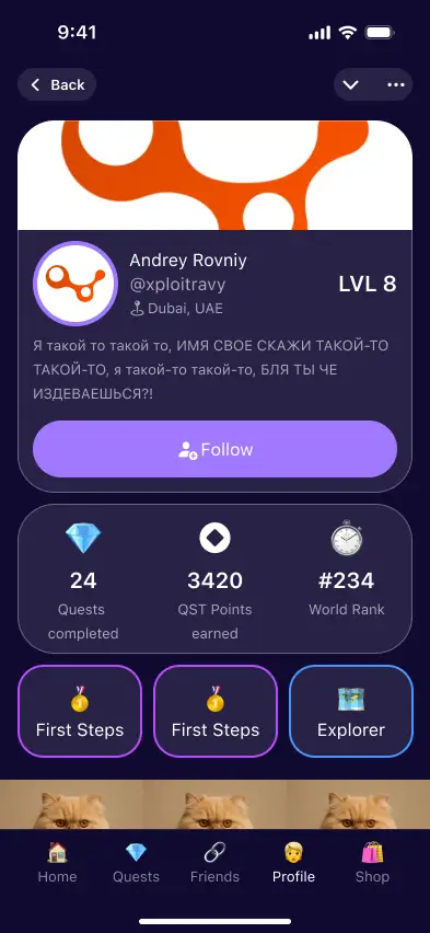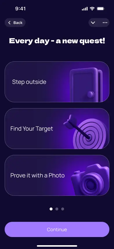 Players receive smart, creative quests that invite them to step outside, explore their surroundings, and complete challenges using photos. Every quest is a small journey — encouraging players to notice details, places, and moments they would normally pass by.